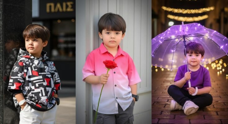 1 ● Ultra-realistic, hyper-detailed, 8K cinematic portrait of a 3.5 year old stylish boy, using the uploaded image for exact face and hairstyle.