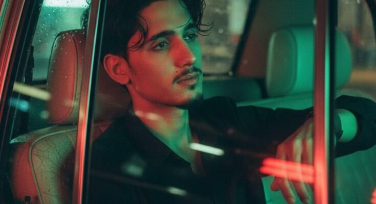 “A stylish young man wearing urban streetwear, silver chains, black cargo pants, sneakers, standing under neon lights, cinematic night city background, realistic lighting – Google Gemini photo prompt.”